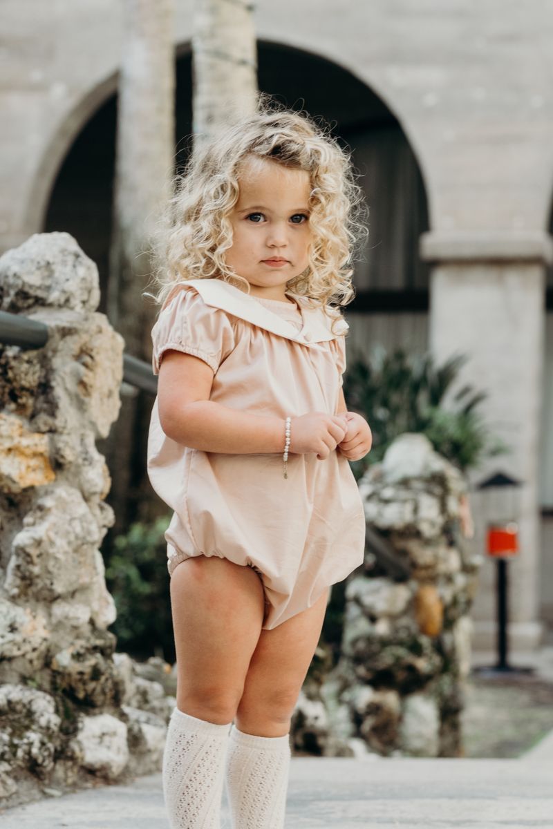 The Jade Romper is a light pink, ultra-dressy statement piece designed with refined details and an effortlessly elegant silhouette for your most special moments.
